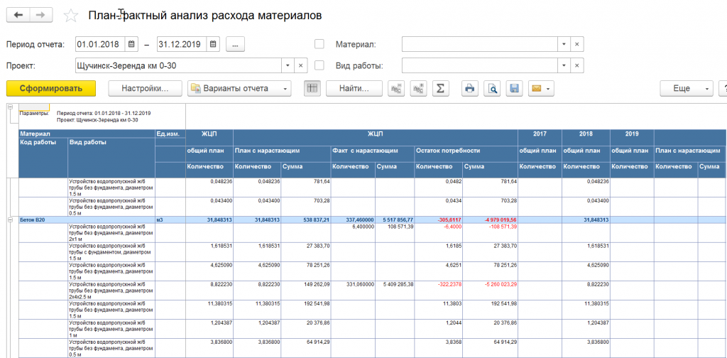 - Фиксация отклонений расхода материалов по выполненным работам от норм, зафиксированных в смете;