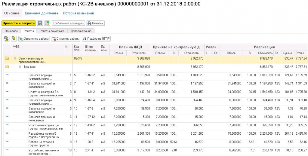 - Фиксация выполнения физических объемов работ с детализацией оперативного планирования (декада, неделя, день, смена);