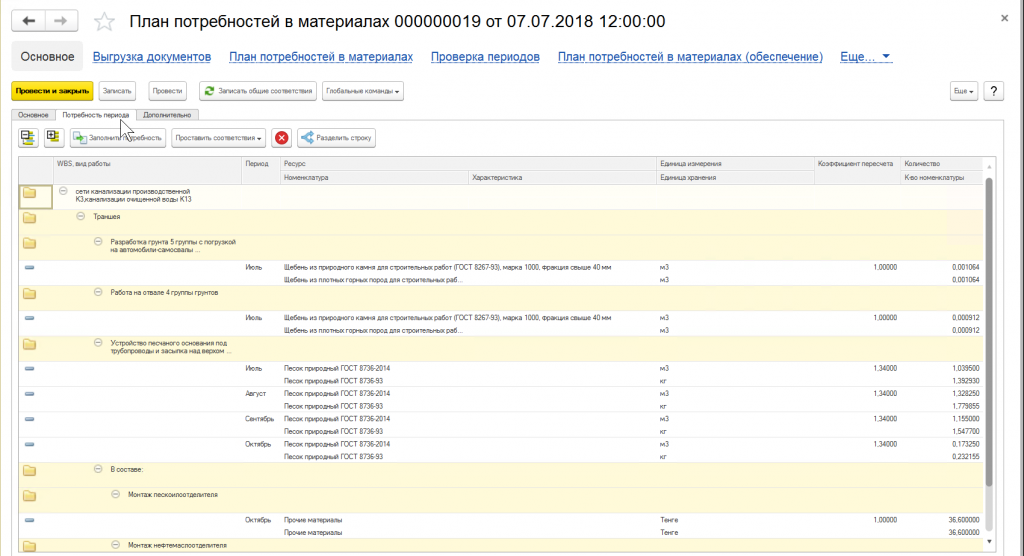 Отдельное отображение потребности в оборудовании (дорогостоящие материальные ресурсы, с сроком изготовления и поставки больше месяца) и инертных материалах (материальные ресурсы, что используются каждый день, относительно недорогие).