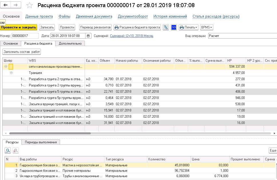 Каждый модуль покрывает потребности планирования и учета работ проекта, материальных, трудовых и машинных ресурсов.